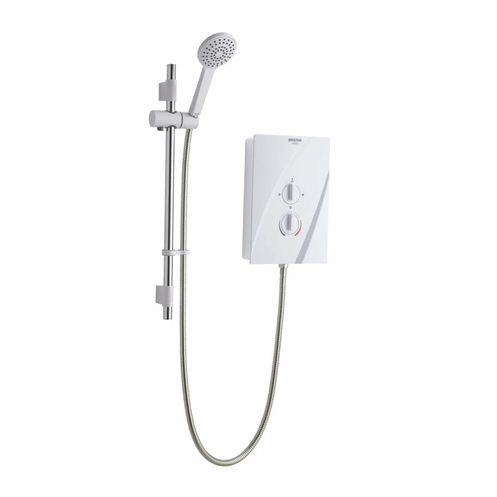 The Bristan Cheer electric shower is stylish with a modern minimalistic design and its ease of use makes it practical in every way. It has dual dials for flow and temperature control. It is also easy to fit with its multiple water and electric input points and the large footprint of the shower means it will cover most old showers. The crisp white finish gives it that sleek finish, so it looks the part in your bathroom.