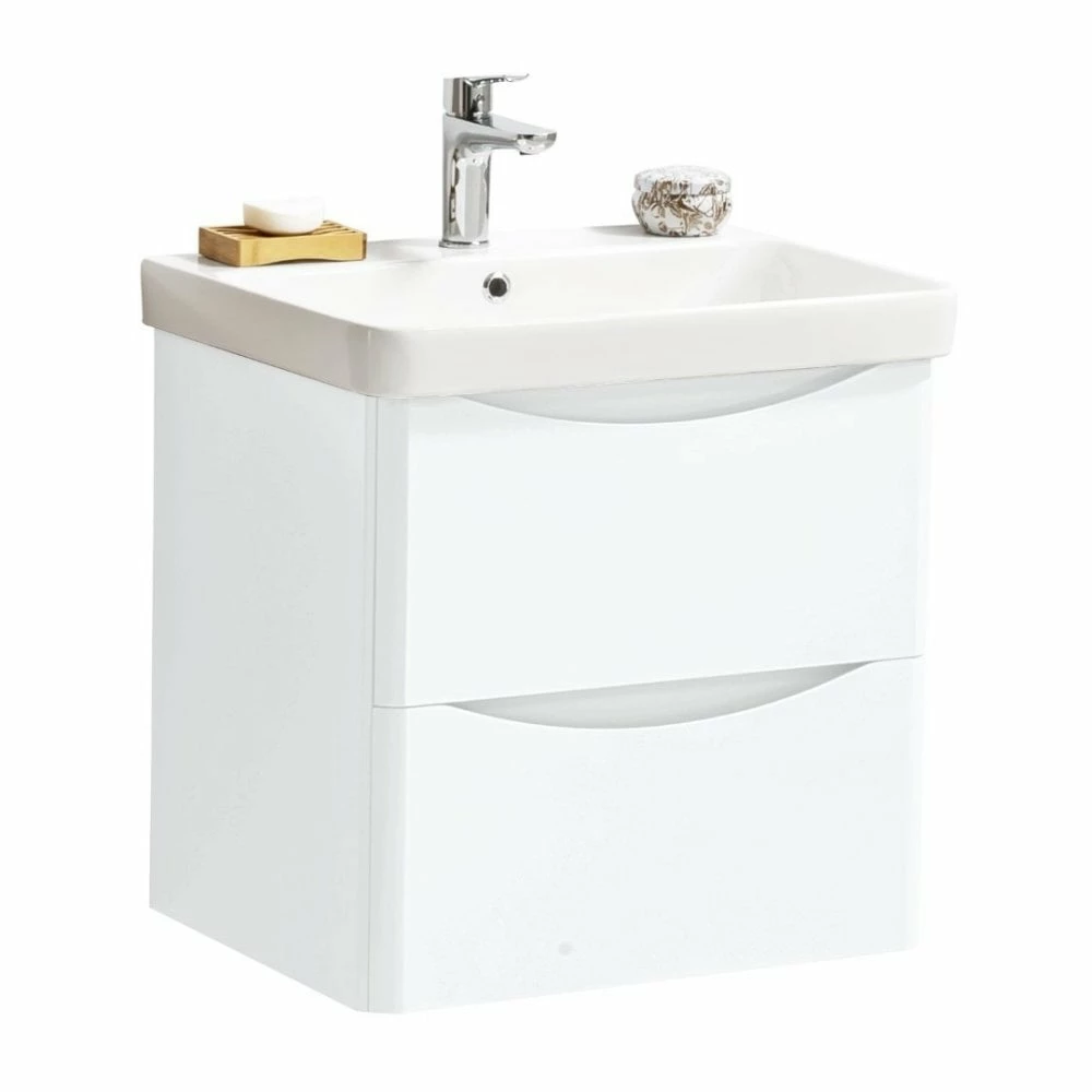 Kartell Arc 600mm White Gloss 2 Drawer Wall Mounted Vanity Unit & Ceramic Basin
