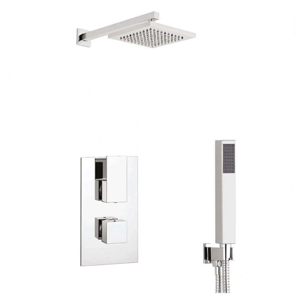 Element Square Chrome Concealed Thermostatic Shower Valve, Fixed Drencher Head & Handheld Flexible Shower Kit