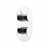 The Element range of showers and brassware by Kartell is a contemporary collection of chrome showers and bathroom accessories featuring square edges and a smooth finish to make a sophisticated statement in your modern bathroom. This square concealed thermostatic shower valve features two separate control handles fitted onto a secure back plate which allow you to adjust water temperature and water flow whilst also keeping your bathroom looking super smart by hiding all pipework. This set also includes an overhead fixed drencher shower head which connects to the concealed shower valve via hidden pipe work. The large rain style drencher shower head provides a heavy water flow and a luxurious showering experience. This set also includes a separate rectangular shower handset featuring striking square edges and a modern design, the handset can be held in a surface mounted holder and can be removed and used within range of the flexible hose for ease of use.