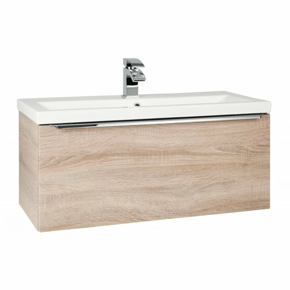 Add a touch of modern elegance to your bathroom with this super smart Kore 800mm Wall Mounted Single Drawer Unit finished in Sonoma Oak & a Single-Tap-Hole Ceramic Basin . Featuring squared edges, smooth chrome drawer handles and impressively strong build quality, this set by Kartell is sure to impress guests and stand up to the test of busy family life. The drawer mechanism uses soft close technology and it’s metal drawer box offers lots of storage space, while the ceramic basin uses a 1-tap-hole design, fit for a single basin mixer tap.