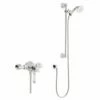 This Logik concealed thermostatic shower valve by Kartell features two separate temperature and flow control handles with smooth, round edges fitted to a secure back plate. It’s clean, rounded form is designed to fit perfectly into any modern bathroom and add a touch of luxury without making a bold statement.