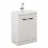 Upgrade your bathroom with the sleek and sophisticated Matrix 1100mm Right Hand L Shaped Combination Basin WC Unit. This modern set by Kartell features squared edges and no unnecessary fuss for a sharp, minimalistic look; not to mention exceptional durability. The solid build quality, soft close drawers and large storage space make it perfect for busy bathrooms and combines style and functionality at unbeatable value. The large ceramic L-shaped basin and worktop sit flush onto the matching vanity unit & WC unit which are designed to sit directly side by side. Impress your guests with this modern addition to your bathroom!