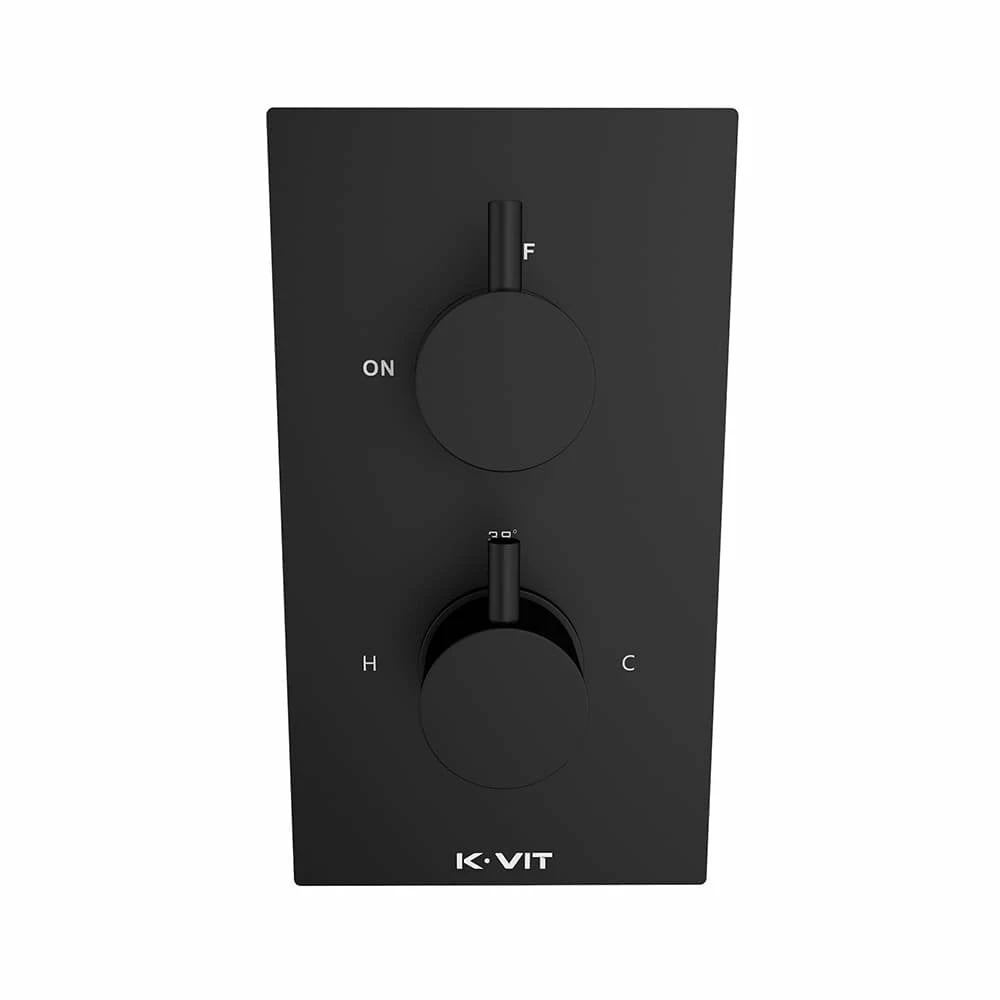The Nero round range of showers and brassware by Kartell is a contemporary collection of all black showers and accessories featuring smooth curves and a matt finish to make a sophisticated but bold statement in your modern bathroom. This concealed thermostatic shower valve features two separate control handles fitted onto a secure back plate which allow you to adjust water temperature and water flow whilst also keeping your bathroom looking super smart by hiding all pipework.