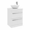 Modernise your bathroom and give yourself more space with this small Purity 410mm Floor Standing Single Door Cloakroom Unit in White Gloss with a matching 1-tap-hole basin. This modern, minimalist set by Kartell features a rectangular basin, squared edges all around for a sharp look, a smooth brushed aluminium handle and exceptional durability all in a small & tidy package, perfect for little bathrooms. The soft-close door mechanism and ample storage space make it perfect for busy families and paired with it’s compatible 1-tap-hole basin, it effortlessly combines style and functionality at unbeatable value. Impress your guests and unlock more floor space with this modern addition to your bathroom!