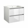 Upgrade your bathroom with the sleek and sophisticated Purity 600mm Floor Standing Double Drawer Unit in Grey Gloss with a Ceramic Worktop & Ceramic Sit On Bowl Basin. This modern set by Kartell features squared edges for a sharp look, smooth brushed aluminium handles, and exceptional durability. The soft-close drawer mechanism and ample storage space make it perfect for busy families and paired with stylish large bowl shaped basin and ceramic worktop, it perfectly combines style and functionality at unbeatable value. Impress your guests with this modern addition to your bathroom!