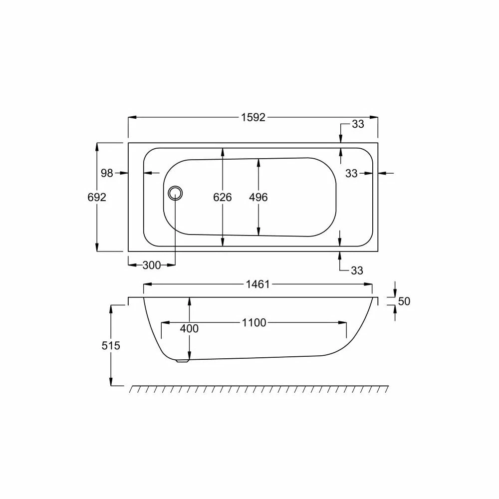 Kartell Refine 1600 X 700mm Single Ended Acrylic Bath - Image 2