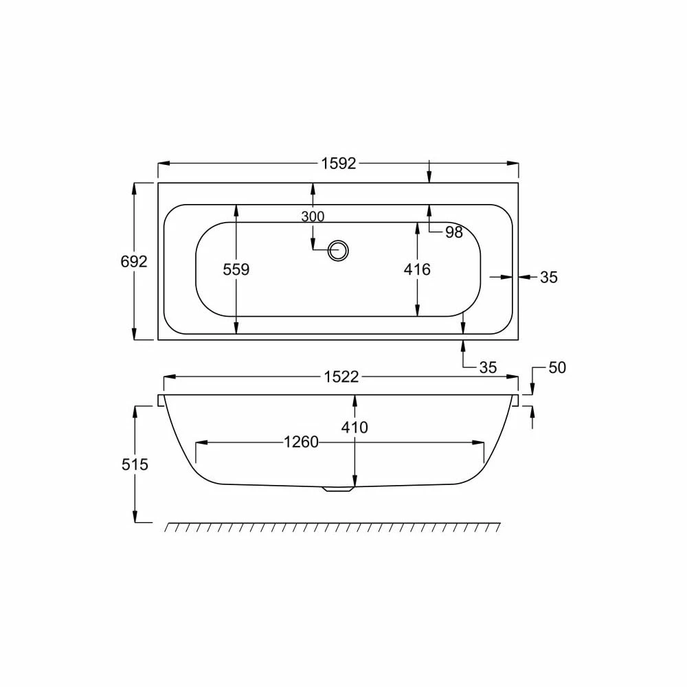 Kartell Refine 1600X700mm Duo Bath With Legs - Image 3